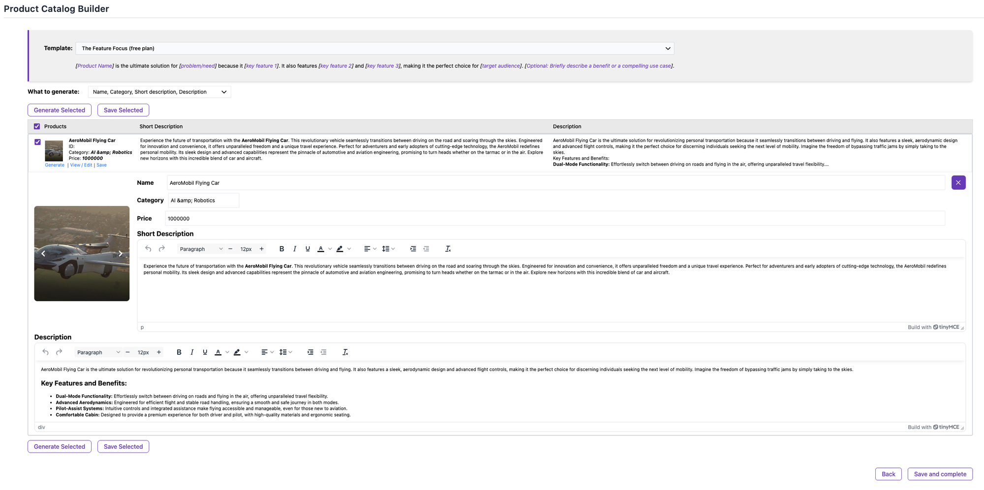 - Click “Generate Product” – Maika will write descriptions based on your chosen template.