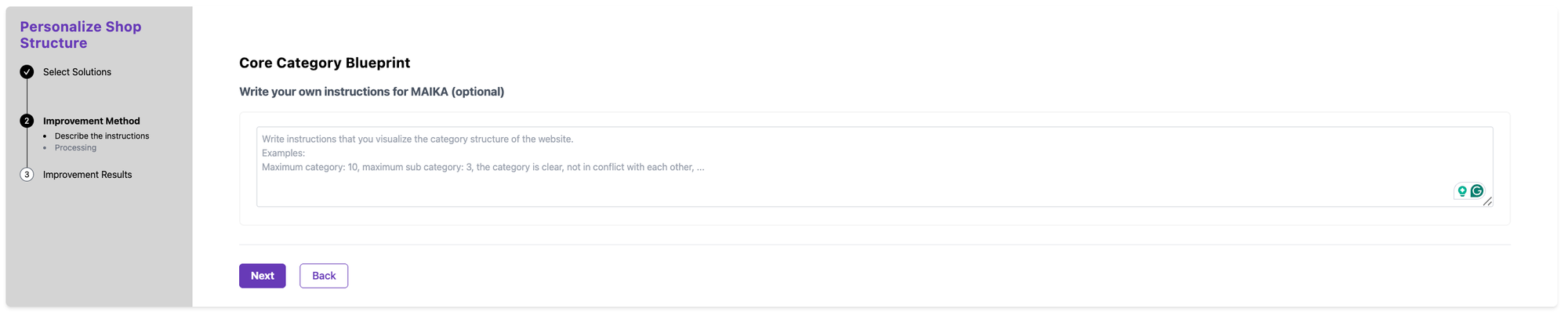 - Structure Editor: A feature for managing categories and attributes - add, delete, or edit categories. You can also have Maika write new category descriptions, saving you time and effort.
